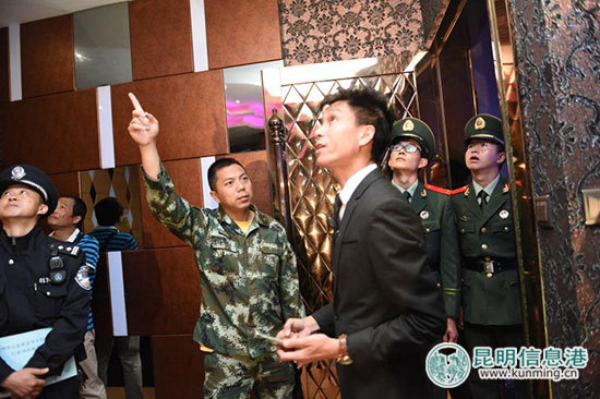 ????當(dāng)晚的行動(dòng)開(kāi)始之后,記者跟隨部分警力前往一些重點(diǎn)行業(yè)進(jìn)行突擊檢查,在斗南花市附近一家星級(jí)酒店,民警先后對(duì)該酒店實(shí)施旅客實(shí)名制入住的規(guī)章制度、登記臺(tái)賬進(jìn)行了檢查,并查看了酒店的消防組、監(jiān)控中心設(shè)施是否完備。