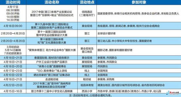 為充分發(fā)揮創(chuàng)新對(duì)企業(yè)轉(zhuǎn)型升級(jí)的引領(lǐng)作用,本屆博覽會(huì)將舉辦多場專業(yè)化論壇及發(fā)布會(huì),邀請國家工信部、科技部、質(zhì)檢總局相關(guān)領(lǐng)導(dǎo)及相關(guān)院士、專家、學(xué)者,就如何推動(dòng)傳統(tǒng)鞋(體)產(chǎn)業(yè)轉(zhuǎn)型升級(jí)等進(jìn)行深入研討。屆時(shí)還將舉辦2017中國(晉江)體育產(chǎn)業(yè)發(fā)展論壇暨晉江市“互聯(lián)網(wǎng)+鞋業(yè)”項(xiàng)目啟動(dòng)儀式、福建省制鞋產(chǎn)業(yè)創(chuàng)新技術(shù)聯(lián)盟揭牌儀式和制鞋標(biāo)委會(huì)鞋底工作組授牌儀式等活動(dòng),促進(jìn)晉江傳統(tǒng)行業(yè)的協(xié)同發(fā)展和企業(yè)的轉(zhuǎn)型升級(jí)。