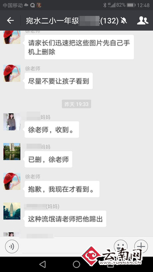 ????該班級(jí)群內(nèi)一名不愿意透露姓名的學(xué)生家長向記者證實(shí)了事件的真實(shí)性,他表示當(dāng)看見群內(nèi)的不雅視頻時(shí),內(nèi)心十分憤怒,雖然群里都是宣威市宛水街道第二完全小學(xué)一年級(jí)的小學(xué)生家長,但孩子在家里隨時(shí)會(huì)翻看父母的手機(jī),看見這個(gè)視頻后家長該如何解釋呢?他認(rèn)為這名辯解的家長有不可完全推卸的責(zé)任,將此類視頻保留在手機(jī)中本身就存在較大的隱患,如果家長潔身自好,就算被人成功解鎖手機(jī)密碼,沒有污穢視頻也就不會(huì)發(fā)生后面的尷尬事。