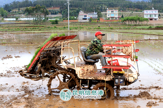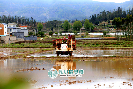 嵩明縣牛欄江鎮(zhèn)古城村委會(huì)機(jī)插秧作業(yè)現(xiàn)場(chǎng)