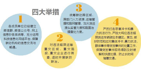 ??? 昆明信息港·都市時(shí)報(bào) 記者黃朝紅 昆明市治超辦聯(lián)動(dòng)滇中城市群的曲靖市、玉溪市、紅河州、楚雄州治超辦以及南北大通道的昭通市治超辦,對(duì)通行各轄區(qū)內(nèi)的超限超載貨車進(jìn)行聯(lián)動(dòng)查處,從即日開始,各州(市)發(fā)生的重大超限運(yùn)輸違法信息將與其它州(市)區(qū)域治超聯(lián)動(dòng)小組進(jìn)行交換,對(duì)跨區(qū)域違法超限運(yùn)輸車輛進(jìn)行處理,持續(xù)到7月20日。