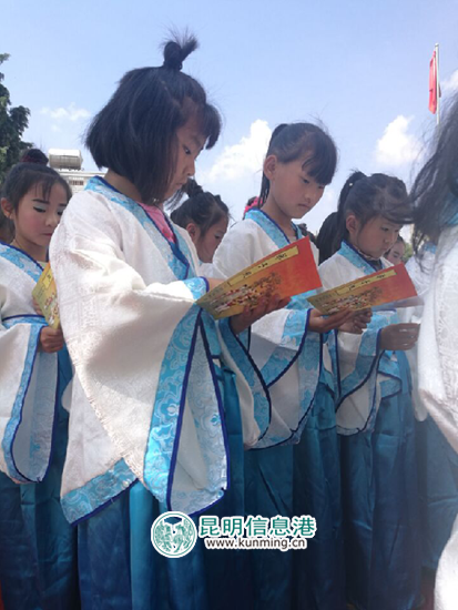 ????悠悠古箏曲,濃濃翰墨香。一曲清幽的《陽關(guān)三疊》古曲伴著孩子們的朗朗書聲,布能小學(xué)全體師生在此舉辦一期以“創(chuàng)文明城市,誦國學(xué)經(jīng)典”為主題的道德講堂活動(dòng)。身著漢服的師生們風(fēng)格雅致,在云南爾易書院易迪院長(zhǎng)的教授下,學(xué)習(xí)了“拜師禮”,男童習(xí)拱手禮,女童習(xí)束手禮,聽書時(shí)“席地而坐”禮……古人溫文爾雅、彬彬有禮的儀態(tài),正是文明有禮的教導(dǎo),布能小學(xué)的孩子們?cè)趯W(xué)校已經(jīng)習(xí)禮兩年多,他們已經(jīng)熟悉中國傳統(tǒng)禮儀。拜師禮儀式,是傳統(tǒng)文化與現(xiàn)代文明的對(duì)接與踐行,通過向古代圣賢教育者孔子行禮,表達(dá)現(xiàn)代人應(yīng)培養(yǎng)“尊師重道”、“尊師重教”的感恩之心,是營造良好校園文化氛圍的載體。