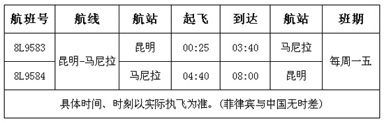 ????昆明-馬尼拉航線由B737-800執(zhí)飛,航班信息如下: