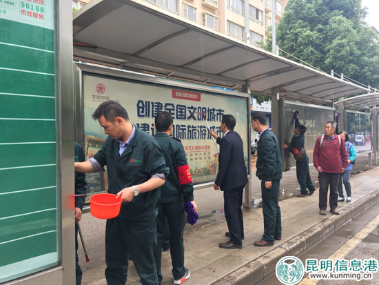 ????昆明信息港訊 記者李金梓 通訊員王靜 公交不僅是一個(gè)城市的流動(dòng)名片,更是展現(xiàn)城市文明的窗口。自5月起,昆明公交集團(tuán)一公司一車隊(duì)加強(qiáng)對(duì)49個(gè)公交站牌、站亭的維護(hù)和管理,力求在進(jìn)一步美化站容站貌,給乘客提供一個(gè)干凈整潔、文明有序的乘車環(huán)境的同時(shí),助力昆明市創(chuàng)建文明城市。