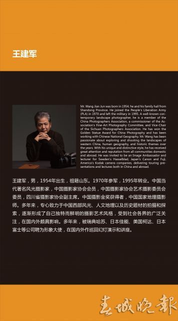 ????此次攝影展將展出兩位攝影師的60幅作品,一位攝影師是中國著名風光攝影師王建軍,一直致力于拍攝美國國家公園風光,另一位攝影師來自美國,專注于拍攝中國西部的自然風光及野生動物。希望藉由本次影展,可以吸引更多的中國游客前往美國旅游,同時更多的美國游客來中國西部尤其是云南省旅游。值得廣大攝影愛好者關注的是,開幕式結束后, 當日13:30 至15:00 中國著名攝影師王建軍將舉辦分享會,跟攝影愛好者分享在美國國家公園的故事、拍攝風景的特別技巧、學習攝影的經(jīng)歷等。(記者李超 陸橙 文 美國駐成都總領事館新聞文化處 供圖)