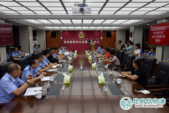 ????昆明信息港訊 記者江楓 通訊員謝丹陽 5月19日,國務院授予西雙版納州公安局禁毒支隊“模范禁毒支隊”稱號,禁毒支隊支隊長李正濤等人還參加了公安系統(tǒng)英雄模范立功集體先進事跡報告團赴全國巡回報告。6月12日下午,西雙版納州公安局召開座談會,熱烈歡迎領(lǐng)獎代表和報告團成員歸來。