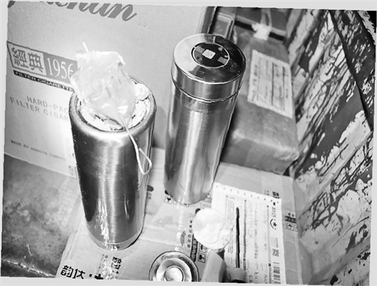 ????4月27日,瀾滄邊境檢查站的執(zhí)勤官兵在對一輛貨運(yùn)車輛進(jìn)行檢查時,發(fā)現(xiàn)其中一個包裹里有兩個保溫杯里面裝的竟然是半杯咸菜,而且保溫杯底有重新粘過的痕跡。經(jīng)過進(jìn)一步檢查,執(zhí)勤官兵當(dāng)場從兩個保溫杯夾層內(nèi)查獲海洛因800克。