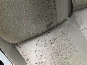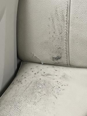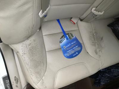 ????“一路堵堵停停我也沒太留意后排,到達目的地時,我還‘溫馨提示’乘客慢慢走,乘客帶著他的小孩什么都沒說就急忙下了車了,我也沒太在意開走了。離開后大約5分鐘,我回頭到后排拿東西,頓時傻眼?!毙∮钫f,他發(fā)現(xiàn)后座一大片污損,仔細(xì)觀察后還發(fā)現(xiàn),后排真皮沙發(fā)座椅被踩破損壞兩處,均是不可挽回的破損,這時他才恍然大悟,“怪不得那位‘家長’帶著他的小孩匆忙離開了?!?/p>