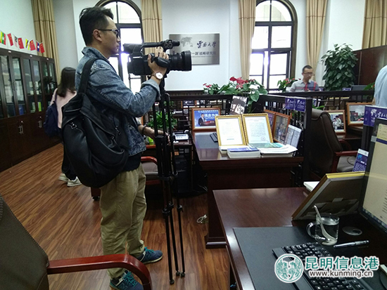 網(wǎng)絡(luò)媒體記者在云南大學(xué)“一帶一路”倡議研究院采訪