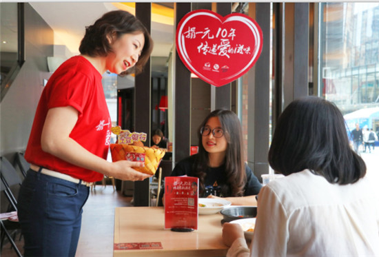 ????“請問需要為您的賬單加上1元愛心捐款嗎?”每年夏天,當(dāng)你走進(jìn)必勝客歡樂餐廳、肯德基餐廳,總會(huì)聽到餐廳服務(wù)員親切地詢問。這個(gè)持續(xù)了九年的“捐一元”公益項(xiàng)目,8日開啟了第十年的愛心之旅。