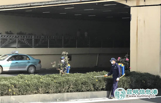 盤龍區(qū)衛(wèi)計(jì)局工作人員在北站隧道周圍噴灑消毒劑 供圖