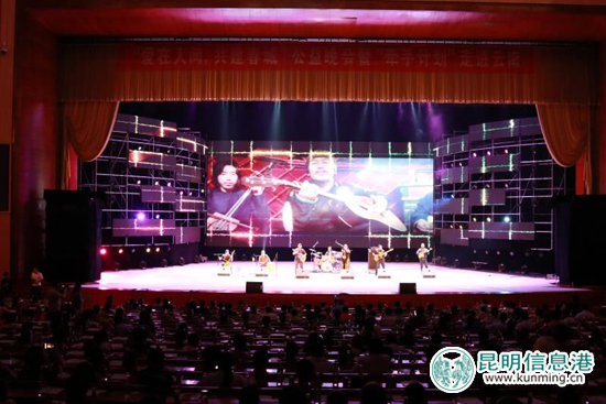 ????晚會(huì)于晚上7:30開始,由中央電視臺(tái)著名主持人唐劍主持。在孩子們歡快的《云南歡迎您》序幕歌舞之后,李丹陽、李俊峰、于珈、佟鐵鑫等歌唱家先后登臺(tái)獻(xiàn)上了了各自的代表曲目,深受觀眾喜愛的杭蓋樂隊(duì)專程趕來助陣,為公益事業(yè)加油助力。闞麗君會(huì)長(zhǎng)演唱的《國(guó)花飄香》充滿深情,戴玉強(qiáng)最后一首《共筑中國(guó)夢(mèng)》高亢有力,唱出了晚會(huì)的主題。云南省雪孩子藝術(shù)培訓(xùn)中心、昆明青少年交響樂團(tuán)和磐羽少年管弦樂團(tuán)的孩子們?yōu)橥頃?huì)表演了交響樂、舞蹈等節(jié)目,精彩的節(jié)目獲得了觀眾陣陣熱烈的掌聲。最后,晚會(huì)在全體演員合唱《難忘今宵》中圓滿落幕。