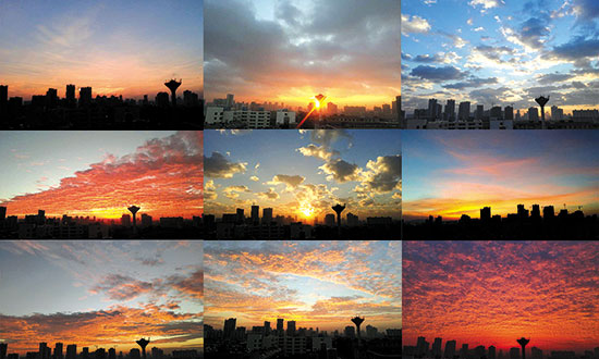 2013年10月,她決定用手機(jī)記錄點(diǎn)什么——每天早晨,她站在自家洗手間的窗口,看著東方。很多時(shí)候,她能看到很美的朝霞,不過(guò)那是在兩三年前了,“現(xiàn)在基本上很難拍到,也許天空變了”。