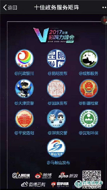 ????全國(guó)政務(wù)V影響力峰會(huì)是在國(guó)家網(wǎng)信辦的指導(dǎo)下,由人民日?qǐng)?bào)、新浪、微博三方聯(lián)合主辦的政務(wù)微博業(yè)內(nèi)最具影響的峰會(huì)活動(dòng),迄今已成功舉辦四屆,形成了常態(tài)化的交流機(jī)制。昆明市政務(wù)微博在本屆峰會(huì)上延續(xù)了“搶眼”表現(xiàn),以“@昆明發(fā)布”為主賬號(hào)、包含106個(gè)官微在內(nèi)的“昆明發(fā)布廳”黨務(wù)政務(wù)微博矩陣在本次峰會(huì)上榮獲“全國(guó)十佳政務(wù)微博矩陣”稱號(hào),同時(shí),“昆明發(fā)布廳”的成員賬號(hào)——“@昆明12345市長(zhǎng)熱線”通過開設(shè)“辦理反饋”微話題、積極回應(yīng)網(wǎng)民咨詢、意見、建議和投訴,獲得閱讀總量超兩億次,榮登“全國(guó)十佳服務(wù)力話題”榜單。