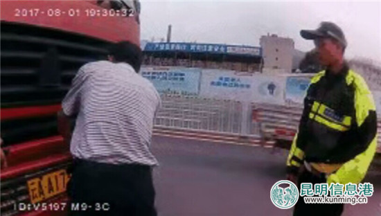 ????昆明信息港訊 記者合宇聰 記者從昆明市公安局交警支隊(duì)九大隊(duì)獲悉,8月2日晚7時許,交警九大隊(duì)騎警在春雨路和益寧路交叉路口處理違章時,一輛號牌為云AA1737的重型罐車沿春雨路行駛過來,駕駛?cè)艘娗胺接序T警,便立即拉動手中的繩子,將遮擋在車輛號牌上的線手套拉開。然而駕駛?cè)巳f萬沒想到其自以為“神不知鬼不覺”的小動作早已被細(xì)心的騎警盡收眼底。