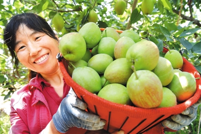8月8日,新疆鐵門關(guān)市博古其鎮(zhèn)黨建扶貧果園內(nèi)貧困農(nóng)民在采摘早酥梨準(zhǔn)備銷往海外市場。 |
