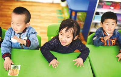 青海免費(fèi)教育惠及各族學(xué)生。圖為青海省黃南藏族自治州幼兒園小班教室內(nèi),藏族女孩夏央娜姆(中)和伙伴在課堂上。 |