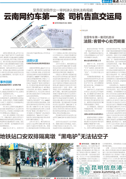????該案被稱為云南網(wǎng)約車第一案。2016年8月17日,昆明市呈貢區(qū)法院開庭審理此案。