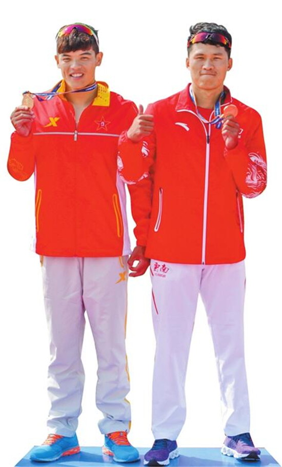 ????皮劃艇項(xiàng)目中的劃艇,是我省近年來依托高原水上訓(xùn)練基地建設(shè)培養(yǎng)出的新興項(xiàng)目,已具備相當(dāng)?shù)母?jìng)爭(zhēng)力,昨天就有銀牌入賬。今天進(jìn)行了多個(gè)雙人項(xiàng)目的比賽,得益于跨地區(qū)強(qiáng)強(qiáng)聯(lián)合,今天我省選手劉浩和解放軍選手李金達(dá)的組合,以3分35秒630的成績(jī)輕松獲得男子1000米雙人劃艇冠軍。萬崟和江西選手門歡的組合,也在女子500米雙人劃艇決賽中以9.8分奪得亞軍。