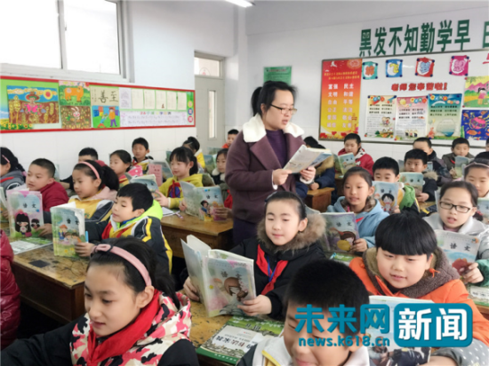 ??? 全國向上向善好青年、山東省棗莊市市中區(qū)實(shí)驗(yàn)小學(xué)老師張小琛在給學(xué)生們上課。 受訪者供圖