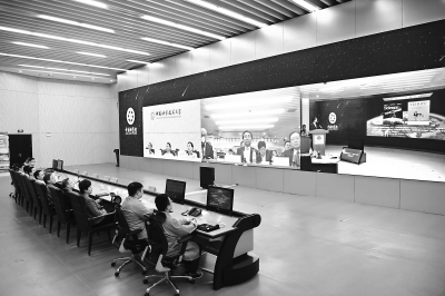 ????量子通信“京滬干線”總控中心分會場的科研人員正忙碌。 新華社記者 劉軍喜攝
