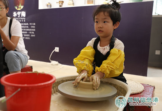 ????開園當(dāng)天,云南非遺文化展示基地內(nèi)人頭攢動,游客們在園內(nèi)參觀代表了云南的烏銅走銀、彝族的刺繡、大理的扎染、建水的紫陶以及織錦、油紙傘、剪紙等多項非遺技藝。