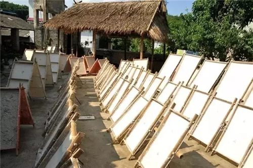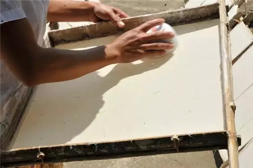 ????將澆好的紙連同紙模一起抬到陽光下暴曬,曬時一定要注意天氣變化。沒有陽光時也可用火烘烤。