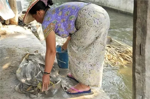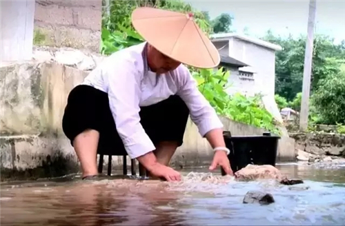 ????構(gòu)皮煮透后,挑到溪流之中,讓水將附著在構(gòu)皮上的火灰沖走,同時用手不斷浣洗,并將雜質(zhì)及硬物清理干凈,直到?jīng)]有雜質(zhì)為止。