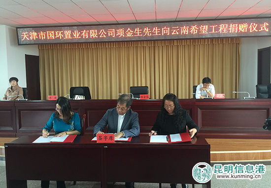 ????昆明信息港訊 記者叢林 10月9日,天津市國環(huán)置業(yè)有限公司項金生向云南希望工程捐贈50萬元,用于改善云南省騰沖市清水鄉(xiāng)三家村民族聯誼完全小學的辦學條件。