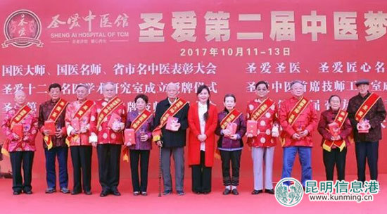 ????昆明信息港訊 記者馬文燾 近日,圣愛(ài)中醫(yī)館第二屆中醫(yī)夢(mèng)圣會(huì)在昆明舉行,300余名老中醫(yī)專家、社會(huì)知名人士和中醫(yī)藥醫(yī)務(wù)工作者出席活動(dòng)。當(dāng)天,現(xiàn)場(chǎng)開(kāi)展了國(guó)醫(yī)大師、國(guó)醫(yī)名師、省市名中醫(yī)、圣愛(ài)圣醫(yī)、圣愛(ài)匠心名醫(yī)表彰大會(huì),與此同時(shí),圣愛(ài)名醫(yī)學(xué)術(shù)研究室授牌成立,并啟動(dòng)了第十屆中醫(yī)膏方養(yǎng)生節(jié)暨名醫(yī)論道“膏方養(yǎng)生保健康”活動(dòng)。