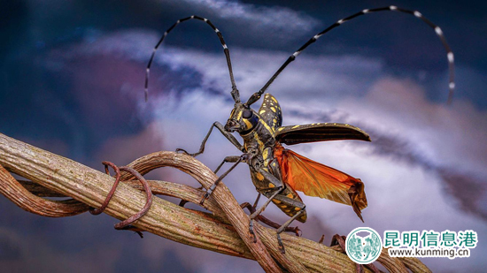 ????展覽展出的50幅昆蟲微距攝影作品,凝結(jié)著四位攝影師高超的微距攝影技術(shù)和辛勤的拍攝歷程,其攝影作品把每一個(gè)蟲子都表現(xiàn)的纖毫畢現(xiàn),展現(xiàn)了昆蟲微觀世界的細(xì)節(jié)之美。照片當(dāng)中,昆蟲的臉上和身體上的紋路、色彩被呈現(xiàn)的極為清晰,連觸角上的須毛都纖毫畢現(xiàn)。