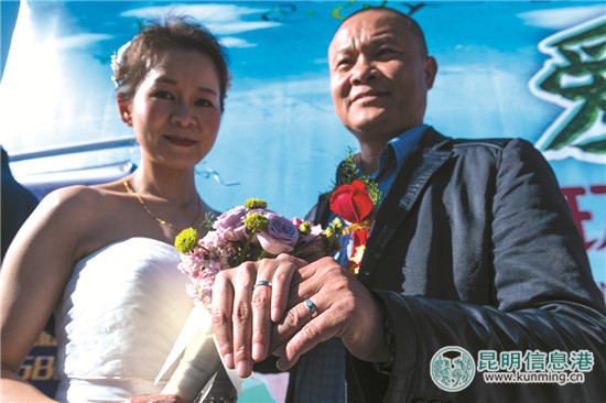 ????現(xiàn)場(chǎng),來參加婚禮的新人共有15對(duì),他們來自不同的年齡層,不同的工作崗位,但各自有著平凡而動(dòng)人的愛情故事,也有著一顆顆熱愛公益、熱愛滇池、熱愛昆明的心。其中,年齡最大的一對(duì)夫妻,為70歲和66歲。