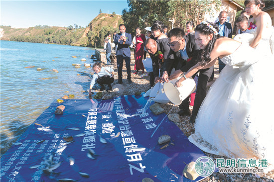 15對(duì)新人將2000余尾鰱鳙魚放入滇池 都市時(shí)報(bào) 實(shí)習(xí)記者趙黎浩