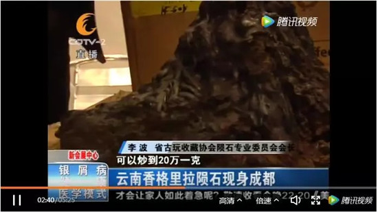 ????李波表示:“現(xiàn)在在香格里拉,可以炒到20萬一克?!钡诂F(xiàn)場,記者并未看到這塊隕石的主人,至于是否如李波所說,具有如此大的價(jià)值,還有待認(rèn)定。
