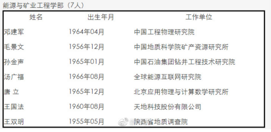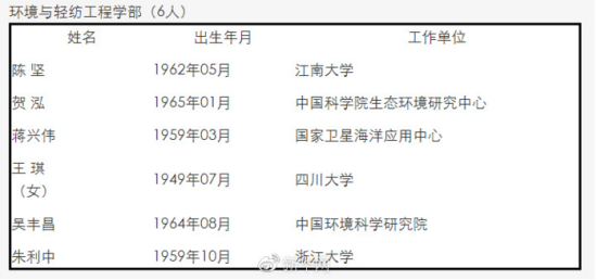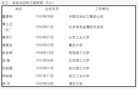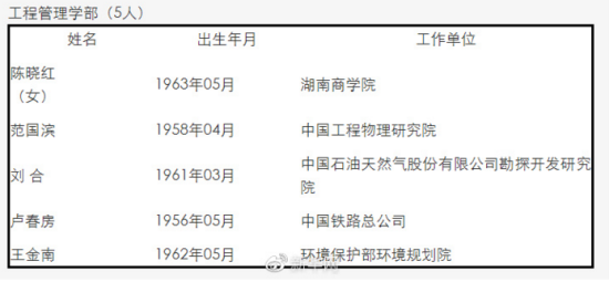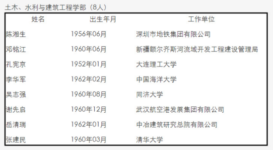 中國工程院2017年當選院士名單