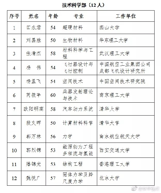 ????新當(dāng)選院士平均年齡54.1歲,最小年齡46歲,最大年齡67歲,60歲(含)以下的占91.8%。新當(dāng)選院士中有3名女性。