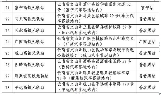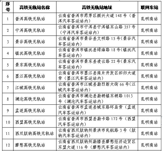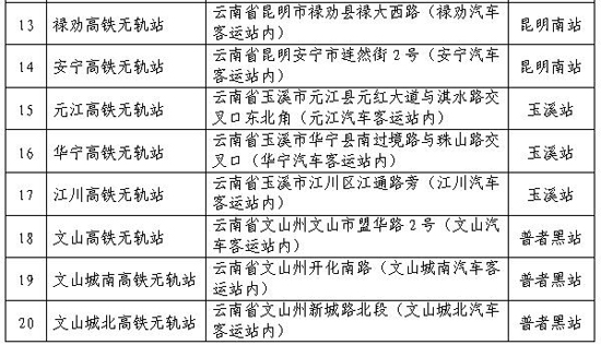 ??? 云南28個高鐵無軌站地址如下: