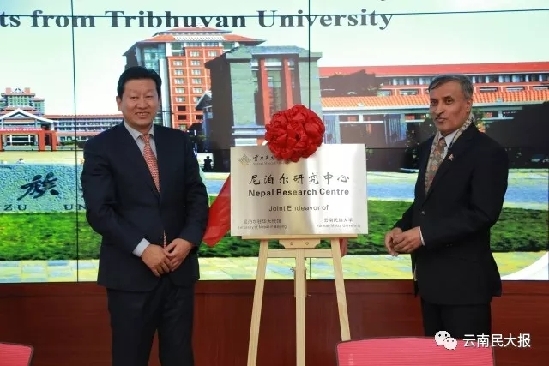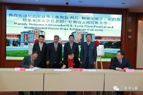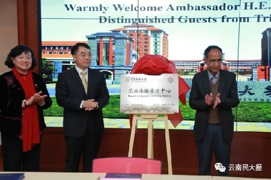 ????隨后,利拉?瑪尼?鮑德爾、陳魯雁為尼泊爾研究中心揭牌,那金華、迪力拉姆?烏普利迪為尼泊爾語(yǔ)學(xué)習(xí)中心揭牌。云南民族大學(xué)先后與尼泊爾特里布文大學(xué)簽署校際間合作備忘錄,與尼泊爾特里布文大學(xué)、昆明ITL公司簽署三方合作備忘錄。據(jù)介紹,今年6月,鮑德爾曾到訪云南民族大學(xué),雙方在師資培養(yǎng)、教學(xué)教材建設(shè)、學(xué)生留學(xué)、共建尼泊爾研究中心、加強(qiáng)人文交流和智庫(kù)研究以及國(guó)際減貧等方面的合作達(dá)成高度共識(shí),同時(shí)為與特里布文大學(xué)的交流與合作架起了橋梁。