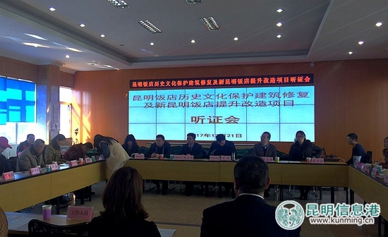 ????昆明信息港訊 記者李瑩 12月21日下午,盤龍區(qū)人民政府拓東街道辦事處組織召開《昆明飯店歷史文化保護(hù)建筑修復(fù)和新昆明飯店提升改造項(xiàng)目》(以下簡(jiǎn)稱《改造項(xiàng)目》)市民聽證會(huì)?!陡脑祉?xiàng)目》提出,將用三年時(shí)間,打造昆明市區(qū)域性國(guó)際中心核心城區(qū)新地標(biāo)之一。新飯店擬2020年開業(yè),屆時(shí),將建成五星級(jí)酒店、5A甲級(jí)寫字樓、綜合商業(yè)體。在聽取報(bào)告并充分討論后,所有聽證代表同意并表示支持該項(xiàng)目實(shí)施。