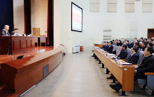李曉鵬首先談了黨的十九大的歷史貢獻和重要意義。他指出,黨的十九大的歷史性貢獻可以概括為“八個新”。“新時代”,開啟了中國特色社會主義的新時代;“新思想”,確立了習(xí)近平新時代中國特色社會主義思想;“新矛盾”,研判了我國社會的主要矛盾為“人民日益增長的美好生活需要和不平衡不充分的發(fā)展之間的矛盾”;“新使命”,深刻闡述了新時代中國共產(chǎn)黨的歷史使命;“新目標”,提出了“兩個一百年”的奮斗目標;“新方略”,提供了今后一個時期黨的基本方略;“新要求”,對經(jīng)濟建設(shè)、政治建設(shè)、文化建設(shè)等多方面作出了全面部署,提出了一系列新要求新舉措;“新境界”,實現(xiàn)了馬克思主義基本理論與中國實踐相結(jié)合的新飛躍,開辟了馬克思主義新境界,開辟了中國特色社會主義新境界,開辟了治國理政新境界,開辟了管黨治黨新境界。李曉鵬強調(diào),黨的十九大是在全面建成小康社會決勝階段、中國特色社會主義進入新時代的關(guān)鍵時期召開的一次十分重要的大會,具有重要的政治、歷史、理論和實踐意義。黨的十九大不僅在中國共產(chǎn)黨的歷史上,而且在中華人民共和國的發(fā)展史上,都具有重要的里程碑意義。
