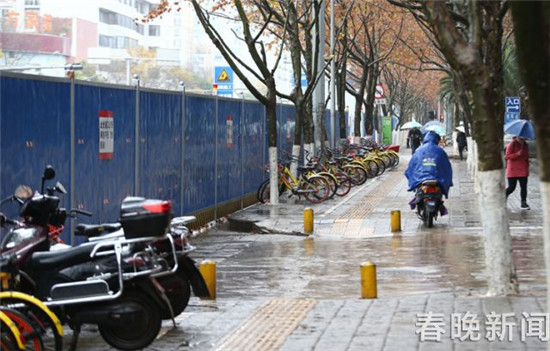 ????去年12月21日起,昆明市人民路整治工程開始進(jìn)入二環(huán)。今年1月3日,記者在人民中路傲城大廈段看到,現(xiàn)場(chǎng)已架起新圍擋,原來的非機(jī)動(dòng)車道被占用,非機(jī)動(dòng)車需從施工方提供的便道通行。從整條人民路已圍擋路段通行情況看,傲城大廈段和貴研小區(qū)附近段已出現(xiàn)擁堵,其他路段特別是西苑立交外通行情況尚較好。