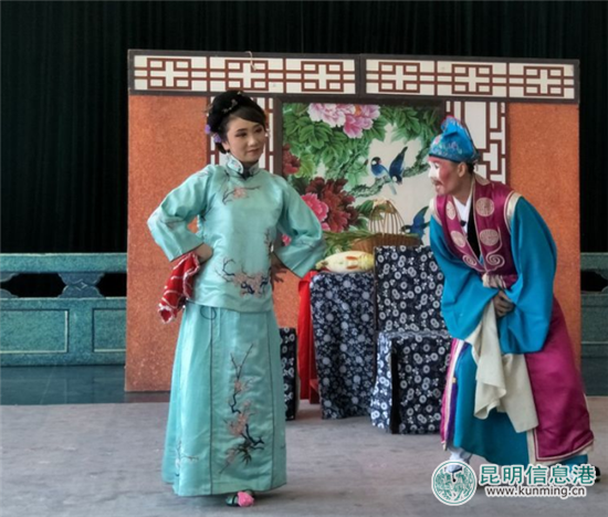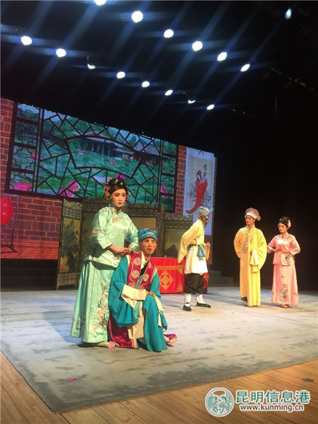 ????昆明信息港訊 記者李紅鸞 2018年1月4日下午,由云南文化藝術(shù)職業(yè)學(xué)院、云南省花燈劇院聯(lián)合培養(yǎng)的第一批花燈非遺傳承學(xué)生在梁家河藝術(shù)客廳向春城人民匯報(bào)演出大型花燈劇目《墻頭記》,學(xué)生們精彩的演出贏得了現(xiàn)場(chǎng)觀眾陣陣掌聲。