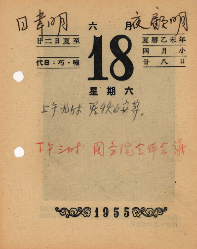 周恩來總理的臺歷(圖片來自中央檔案館)