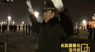 ????升國(guó)旗時(shí),樂(lè)隊(duì)面向天安門(mén),我面向樂(lè)隊(duì),升旗手和儀仗隊(duì)執(zhí)行隊(duì)長(zhǎng)面向天安門(mén),他們都背對(duì)著我。2017年12月28日凌晨預(yù)演,我說(shuō)我打3拍起,就是口令“敬禮——”123起,但是等2017年12月30日再預(yù)演的時(shí)候,就發(fā)現(xiàn)不行。