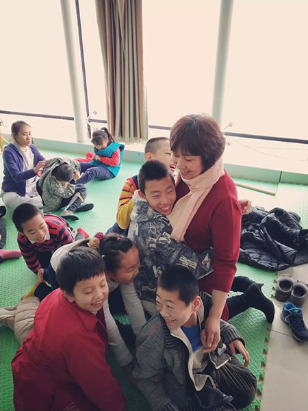 賈秀芳與康復(fù)中心的腦癱患兒。(2017年2月14日攝)