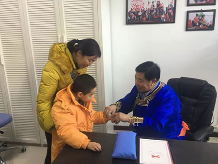 ????得道多助,2017年12月,在作為首屆全國(guó)文明家庭的代表參加表彰時(shí),賈秀芳結(jié)識(shí)了來自內(nèi)蒙古的文明家庭代表草原醫(yī)生王布和。去年12月12日,在她的邀請(qǐng)下,王布和第二次到康復(fù)中心為孩子們義診,許多接受過一次義診的孩子在飲食睡眠方面都有了明顯改善?!坝辛怂膸椭夷転楹⒆觽冏龅酶??!辟Z秀芳說。