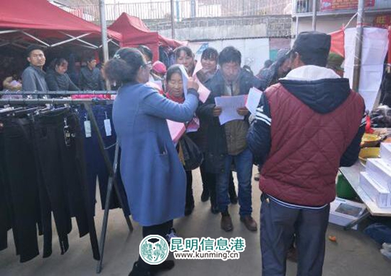 ????昆明信息港訊 通訊員侯玉絨 楊江 勞務(wù)輸出,致富之路。務(wù)工沒門路,政府來幫助。為貫徹落實(shí)“就業(yè)扶貧”工作,做好全鄉(xiāng)勞務(wù)輸出服務(wù)工作,為求職群眾找到稱心如意的工作崗位,切實(shí)幫助群眾外出就業(yè)增加勞務(wù)收入。1月17日,利用趕集日,舍塊鄉(xiāng)在集鎮(zhèn)組織開展2018年勞動力轉(zhuǎn)移就業(yè)“百日行動”啟動儀式暨“春風(fēng)行動”,為舍塊群眾送崗位、送溫暖。