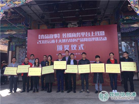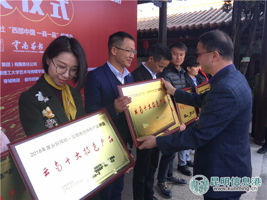 ????昆明信息港訊 記者房天琦 1月27日,“壹品故事”一縣一品傳媒商務(wù)平臺(tái)上線暨“家鄉(xiāng)好風(fēng)物——2018云南十大地方特色產(chǎn)品網(wǎng)絡(luò)評(píng)選活動(dòng)”結(jié)果發(fā)布會(huì)在翠湖蓮華禪院舉行。22項(xiàng)云南企業(yè)產(chǎn)品分別獲評(píng)“2018云南十大地方特色產(chǎn)品”“網(wǎng)絡(luò)最受歡迎品牌”“最具創(chuàng)新性品牌”“最具成長(zhǎng)性品牌”等獎(jiǎng)項(xiàng)。