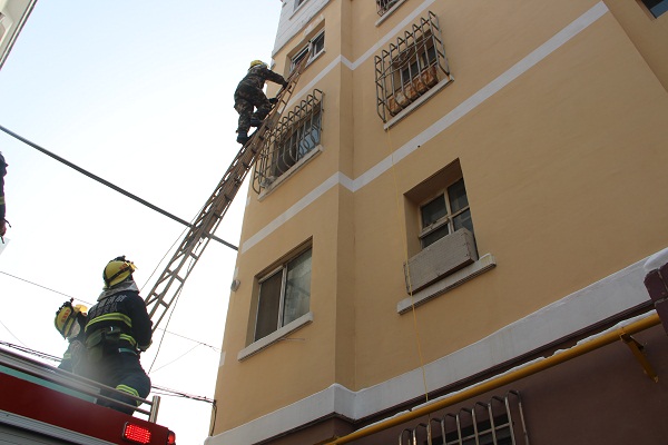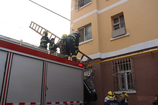 ????開發(fā)區(qū)中隊接到求助后,立即出動一輛搶險救援車,火速趕往現(xiàn)場。到場后,中隊指揮員對現(xiàn)場情況進行勘察:該住戶家的門是五點鎖閉式,而且還自己加裝了一把鎖,房門從里面反鎖著,雖然防盜門的鎖芯已被開鎖公司撬壞,但房門依然無法打開;同時考慮到天氣寒冷及樓頂空間狹小不便架設(shè)金屬拉梯進行高空作業(yè),于是決定利用9米拉梯架設(shè)在搶險救援車上,同時利用兩根保護繩對金屬拉梯及救援戰(zhàn)士做好支點保護。順著拉梯,救援戰(zhàn)士很快爬上該住戶家廚房窗戶位置,所幸該住房沒有安裝防盜窗,戰(zhàn)士得以快速破窗而入,順利打開房門。(記者潘從武 通訊員李漢卓)