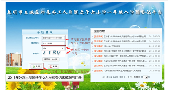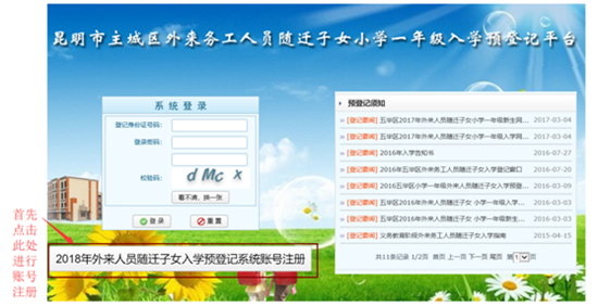 ????昆明信息港訊 記者上官艷君 從2018年起,昆明主城區(qū)的外來(lái)務(wù)工人員隨遷子女小學(xué)一年級(jí)入學(xué)全面實(shí)行網(wǎng)上預(yù)登記。2月4日,昆明市教育局發(fā)布《2018年昆明市主城區(qū)外來(lái)務(wù)工人員隨遷子女小學(xué)一年級(jí)網(wǎng)上預(yù)登記須知》,方便隨遷子女家長(zhǎng)提前熟悉操作流程。